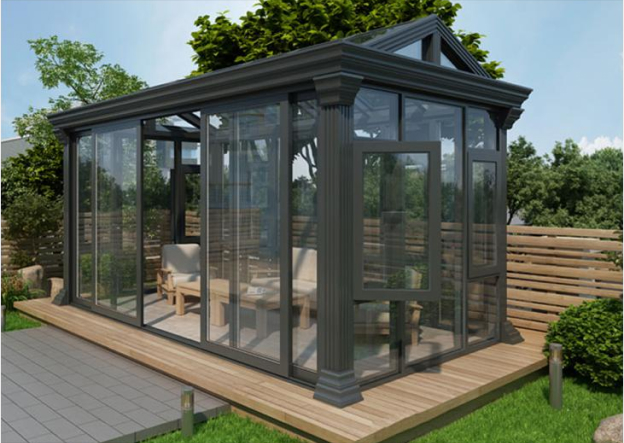 - The sunroom is constructed with a thermal break aluminum-steel structure, ensuring maximum reliability and durability with a steel frame as its core. Aluminum profiles serve as the exterior decorative surface, offering excellent rigidity, high hardness, and good fire resistance, as well as exceptional thermal insulation properties. This design not only ensures the structural strength of the framework but also meets user preferences for appearance and color. For enhanced comfort and intelligence, it can be equipped with advanced smart weather stations. Whether windy or rainy, the weather station quickly detects conditions to automatically close doors and windows, protecting the sunroom from adverse weather. Moreover, during hot summer days with intense sunlight, sunshade curtains on the roof and facade windows can automatically lower using a light-sensing system, effectively reducing indoor temperatures and UV intensity. Key features include: Excellent soundproofing with a triple layer soundproof glass structure to fully enjoy the sunlight in peace. Temperature control design with spray-coated insulation film allows enjoyment of outdoor sunlight even in winter while minimizing indoor heat loss, thus achieving significant energy savings. Customizable and modular production to meet diverse personalized requirements for environment, space, and other preferences of different customers.